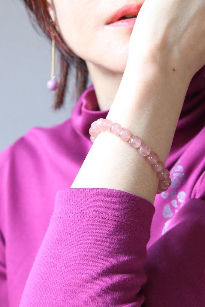 春の訪れを祝うような、多彩なピンクの天然石アクセサリー、